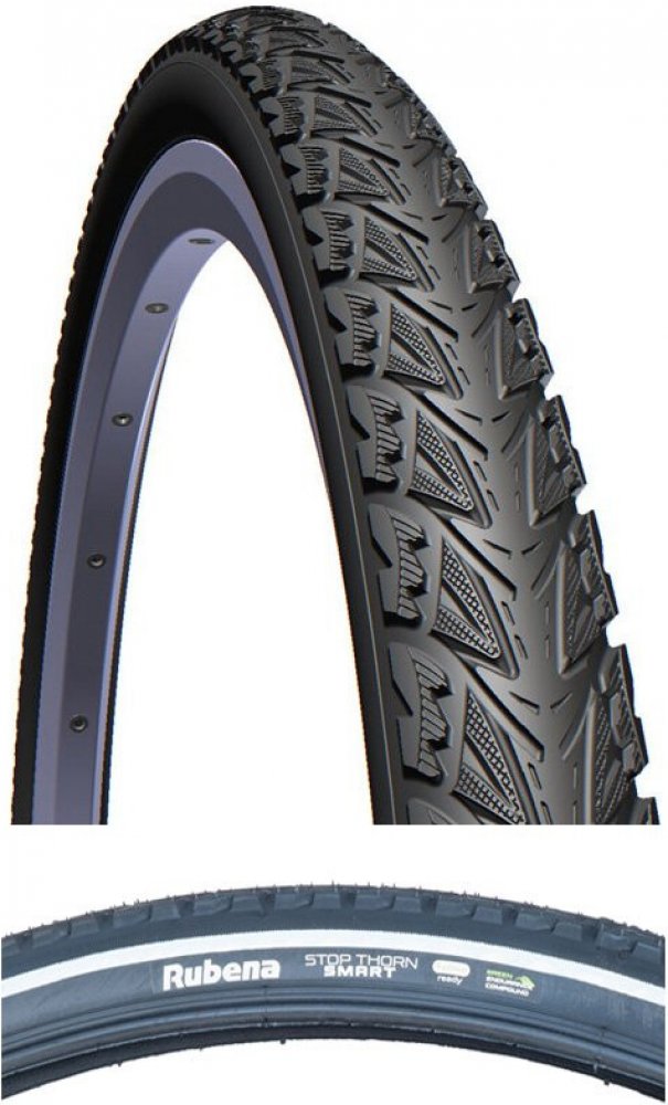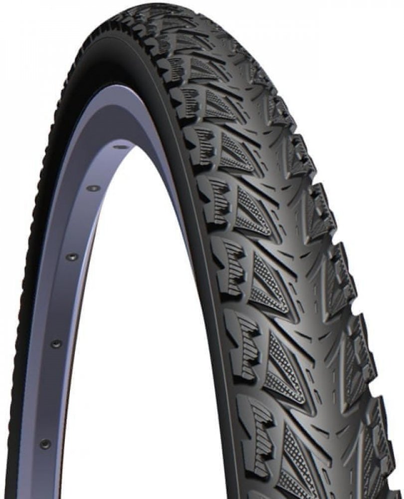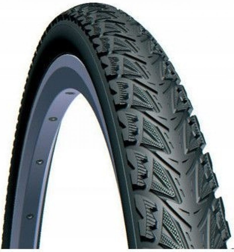 Plášť pro trekingová kola 28". Dezén určen na méně kvalitní a nezpevněný povrch. Téměř hladká střední část dezénu zajišťuje menší valivý odpor při jízdě na silnici.