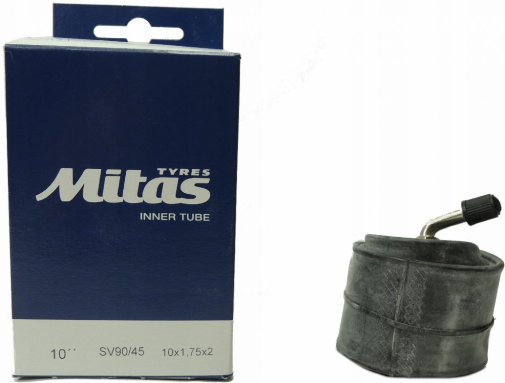 Duše Rubena 12" s 90/90° zahnutým ventilkem - použití na kočárcích, kde není dostatek místa pro použití klasického ventilku - od českého výrobce Rubena = Mitas - ventilek je výškově zalomen pod úhlem 90° a následně v úhlu 90° k ose duše vyveden ven z ráfku zapleteného kola - vždy závisí na rozměru, který je uveden na příslušném plášti - baleno v krabičce - rozměry : 47/62-203 ( zahnutý: 90°natočen...