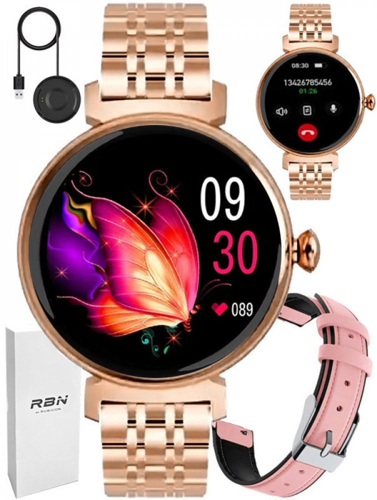 Rubicon dámské 1.04 palce AMOLED kulaté 340 x 340 px 462.69 PPI 5.2 kombinované vlastní OS výrobců 35 mm 35.0 mm 35.0 mm 11.5 mm pro běžného uživatele s minerálním sklíčkem Water resistant přes spárovaný telefon hodinky, krabička, návod k použití, usb kabel Realtek 8763EWE 160.0 mAh Li-Po