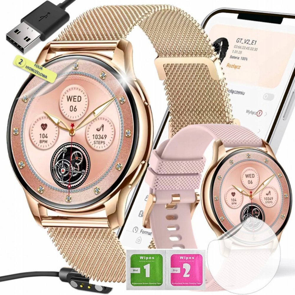 - barva: zlatá ( obálka ) zlatá ( ocelový náramek MESH ) růžová ( silikónový pásek )