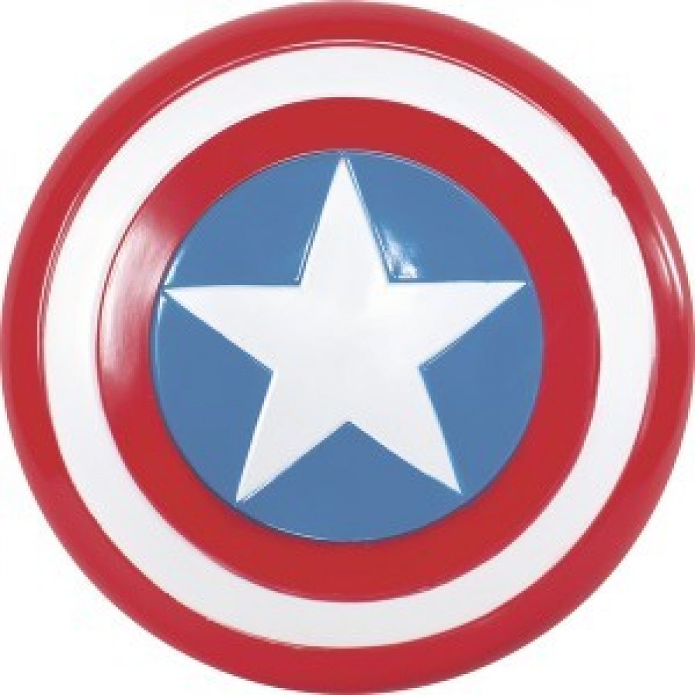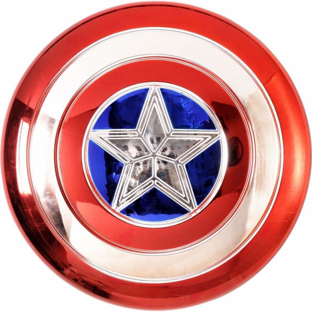 Velmi hezký štít Avengers Assemble Captain America. S tímto štítem se vaše ratolest stane Capitainem America. Tento kruhový štít má červené a stříbrné pruhy se stříbrnou hvězdou ve středu, která je dominantou modrého kruhu uprostřed. Štít je vyrobený z PVC a má průměr 30 cm.
