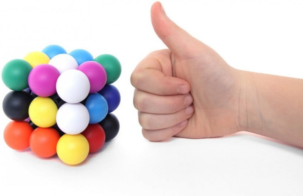 Hlavolam Molekuly se tváří jako klasická Rubikova kostka, avšak vaším úkolem je mít na každé straně hlavolamu 9 barev, tedy od každé barvy jednu.