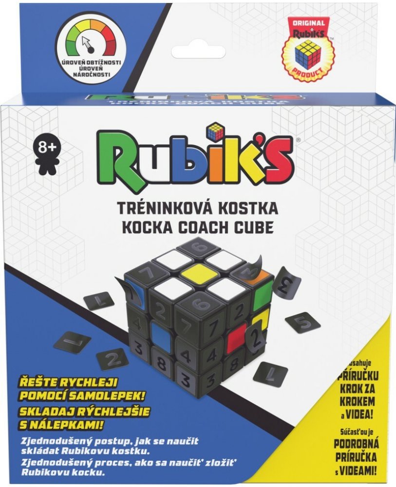 Vždycky jste chtěli umět skládat Rubikovu kostku, ale nevěděli, odkud začít? Rubik’s Coach Cube vám ukáže zjednodušený postup, jak se Rubikovu kostku naučit.Vyřešte hlavolam rychleji pomocí samolepek! Odlepovací metoda je nejjednodušší způsob, jak se naučit skládat Rubikovu kostku 3×3.S touto metodou o 8 krocích a s pomocí průvodce a videí to jistě zvládnete! Na začátku je vaše kostka pokrytá očíslovanými černými samolepkami.Postupujte podle návodu a videí, postupně odstraňte samolepky a vyřešte odkrytá místa. Než se nadějete, bude kostka složená! Znovu ji promíchejte a zkuste to znovu.Zůstane vám klasická Rubikova kostka 3×3, s níž si můžete hrát donekonečna! Odlepování samolepek a řešení krok po kroku zjednodušuje učení a minimalizuje rozptylování.Návody a videa jsou připraveny tak, aby bylo učení co nejpohodlnější! Coach Cube je výukový nástroj pro všechny – včetně učitelů, žáků, nadšenců a kohokoliv dalšího od 8 let!