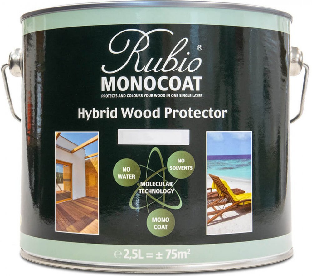 Rubio Monocoat Hybrid Wood Protector Teak olej na ochranu dřeva v exteriéruOlejový nátěr Rubio Monocoat Hybrid Wood Protector je vhodný na ochranu a obarvení většiny druhů dřevin v exteriéru. Pouze jedna vrstva stačí na dřevěné fasády, terasy, pergoly, ploty, zahradní nábytek a další produkty, které ochrání před nepříznivými vlivy počasí. Snadná aplikace a údržba je hlavní vizitkou tohoto výjimečného výrobku. Klíčové vlastnosti Rubio Monocoat Hybrid Wood Protector Založeno na technologii Rubio Monocoat využívající integrovaný UV stabilizátor.Neobsahuje vodu ani rozpouštědla - 0% VOC.Vhodné pro téměř všechny druhy dřeva, lze použít i pro interiérové aplikace!K dispozici ve 12 moderních odstínech dřeva a 8 barvách řady POP Colours.Snadno se nanáší. Rychleschnoucí.Ekonomicky výhodný: velmi nízká spotřeba.Netvoří film, neloupe se ani neodlupuje.Údržba se provádí stejným produktem bez potřeby broušení! Dobré vědětOdstín Pure je nepigmentovaný a postrádá UV stabilizátory. V důsledku toho neposkytuje stejnou úroveň barevné stability vůči přirozenému stárnutí dřeva jako barevné varianty.Při aplikaci na vodorovné povrchy vmíchejte před aplikací 10%Rubio Monocoat Oil Plus 2C Složka B Akcelerátor.Pure je nepigmentovaný. Natural je pigmentovaný žluto/bílými tóny.Instrukce / použitíPřehled návodů. Úplné informace o produktu naleznete v technickém listu ZDE.Zahradní nábytek, okna, dveře, svislé plochy a další dřevěné exteriérové předmětyNavlhčete povrch vodou. Používejte zahradní hadici, ale vyhněte se tlakové myčce, protože tlakové mytí může při nesprávném použití způsobit poškození povrchu. Pokud byl povrch dřeva ošetřen jinou povrchovou úpravou než Hybrid Wood Protector, předchozí povrchová úprava musí být před aplikací Hybrid Wood Protector odstraněna. Zajistěte, aby byla odstraněna jakákoli předchozí povrchová úprava. Začněte s nízkou zrnitostí a zpracujte po sobě jdoucí zrnitosti (např. 40, 80,100,120).Aplikujte neředěný Rubio Monocoat Exterior Wood Cleaner. Vždy používejte ochranné rukavice, brýle nebo obličejový štít.Ošetřenou plochu vydrhněte nylonovým kartáčem s tuhými štětinami v podélném směru dřeva, dokud nebude čistá. V případě odolných zbytků zopakujte ošetření přípravkem Rubio Monocoat Exterior Wood Cleaner. Udržujte povrch vlhký čisticím roztokem po dobu 10-15 minut.Důkladně opláchněte vodou, dokud nezmizí veškerá pěna a zbytky nečistot a nechte povrch zcela vyschnout.Rubio Monocoat Hybrid Wood Protector důkladně promíchejte, dokud nezískáte konzistentní směs. Do oleje opatrně přidejte 10% Rubio Monocoat Oil Plus 2C Složka B Akcelerátor. Doba zpracovatelnosti je 4-6 hodin. Míchejte pouze to, co dokážete spotřebovat v daném časovém rámci. U svislých povrchů není urychlovač (část B) vyžadován.Naneste vrstvu Hybrid Wood Protector pomocí štětce s pevnými štětinami.Nechte olej 10 minut reagovat. Poté povrch znovu vyhlaďte stejným štětcem (bez nanášení nového přípravku).Po 5 minutách jemně setřete povrch hadříkem, který nepouští vlákna, abyste odstranili stopy přebytečného oleje, dokud nebude povrch rovnoměrný.Nechte zaschnout asi 24 hodin. Úplné vytvrzení nastává po 7 dnech.Dřevěné palubky:Navlhčete povrch vodou. Používejte zahradní hadici, ale nikdy ne tlakovou myčku. Tlakové mytí může při nesprávném použití způsobit poškození povrchu. Pokud byl povrch dřeva ošetřen jinou povrchovou úpravou než Hybrid Wood Protector, předchozí povrchová úprava musí být před aplikací Hybrid Wood Protector odstraněna. Ujistěte se, že předchozí povrchová úprava je zcela odstraněna, začněte s nízkou zrnitostí a zpracujte po sobě jdoucí zrnitosti (např. 40, 60, 80 max.).Aplikujte neředěný Rubio Monocoat Exterior Wood Cleaner. Vždy používejte ochranné rukavice, brýle nebo obličejový štít.Ošetřenou plochu vydrhněte nylonovým kartáčem s tuhými štětinami v podélném směru dřeva, dokud nebude čistá. V případě odolných zbytků zopakujte ošetření přípravkemRubio Monocoat Exterior Wood Cleaner. Udržujte povrch vlhký čisticím roztokem po dobu 10-15 minut.Důkladně opláchněte vodou, dokud nezmizí veškerá pěna a zbytky nečistot, a nechte povrch zcela vyschnout.Hybrid Wood Protector důkladně promíchejte, dokud nezískáte konzistentní směs. Do oleje opatrně přidejte 10% Rubio Monocoat Oil Plus 2C Složka B Akcelerátor. Doba zpracovatelnosti je 4-6 hodin. Míchejte pouze to, co dokážete spotřebovat v daném časovém rámci.Naneste Hybrid Wood Protector na 3-4 palubkové desky najednou. Použijte štětec s pevnými štětinami a rozetřete olej ve směru dřeva. Nechte olej 10 minut reagovat. Poté povrch znovu vyhlaďte stejným štětcem (bez nanášení nového přípravku).Po 5 minutách otřete povrch hadříkem nepouštějícím vlákna, abyste odstranili přebytečný olej, dokud nebude povrch vypadat stejnoměrně (nebo použijte tlustou bílou tlumicí podložku, pokud používáte tlumicí roztok).Nechte zaschnout asi 24 hodin. Úplné vytvrzení nastává po 7 dnech. Důležité pokyny pro aplikaci. Nikdy nenatírejte na přímém slunci a při teplotách pod 10°C a pracujte pouze za suchého počasí. ÚdržbaKdyž ošetřené dřevo vykazuje poškození povětrnostními vlivy, je nutná udržovací aplikace Hybrid Wood Protector v původní aplikované barvě. Před aplikací Hybrid Wood Protector je třeba povrch očistit a správně připravit.U teras, schodů a stolů/židlí je obecně potřeba každý rok po první aplikaci nanést udržovací nátěr Hybrid Wood Protector. Udržovací nátěr by měl být aplikován dříve, než se počasí stane nevhodným (i když od první aplikace uplynul méně ne
