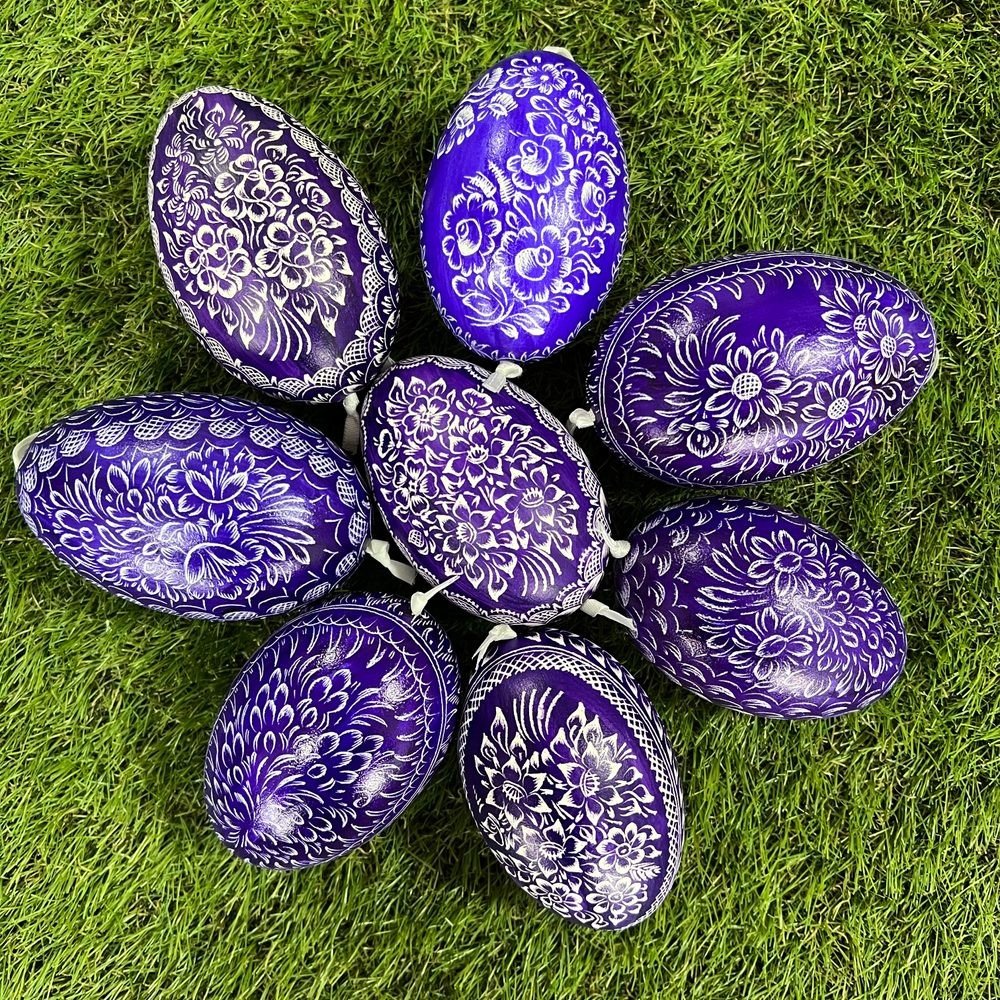 Ručně vyškrabovaná kraslice od českých maléreček z Borkovan. Krásné vzory a poctivá ruční práce malovaných husích vajíček v několika barvách. Vytvořte si dokonalou atmosféru s tradičními velikonočními kraslicemi na zavěšení. Zavěsit je můžete na rozkvetlé kočičky, třešně nebo vložit do stojánku na vajíčka. Oceňte českou ruční práci. Do poznámky k objednávce uveďte barvu vajíčka/vajíček Ručně vyšk...