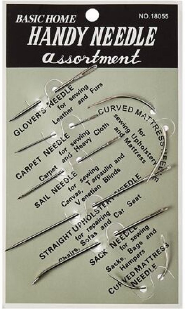 Ruční jehly na kůži, pytlovinu - sada 7 ks je sada 7 ks jehel pro ruční šití - jehlu na kůži a kožešiny, jehlu na koberce, trojhrannou jehlu na plátno a plachtovinu, dlouhou čalounickou jehlu, jehlu na pytlovinu a 2 čalounické jehly na matrace. Tyto jehly se používají pro práci s kůži a pro ruční šití náročných materiálů. Délka: 46 - 90 mm Obsah balení: 7 ks jehel Složení: magnetický kov