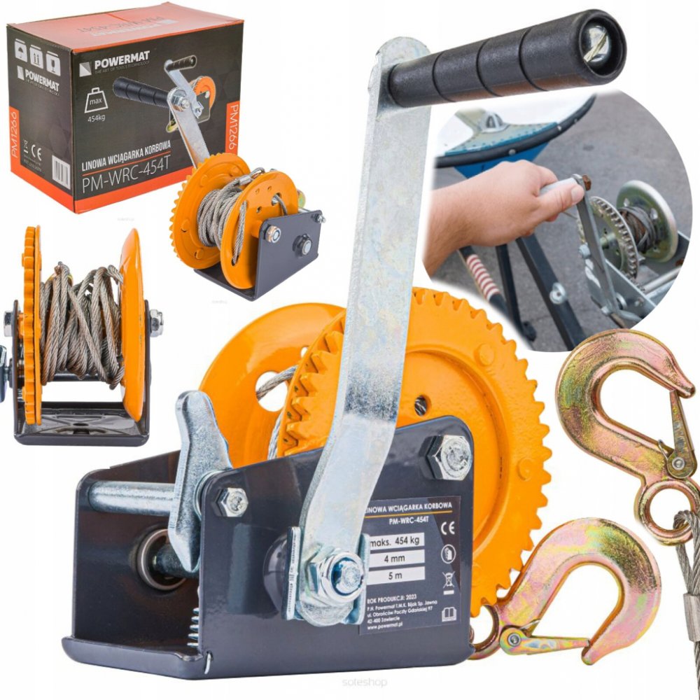 Ruční lanový naviják 454 kg, 5m PM-WRC-454T POWERMAT