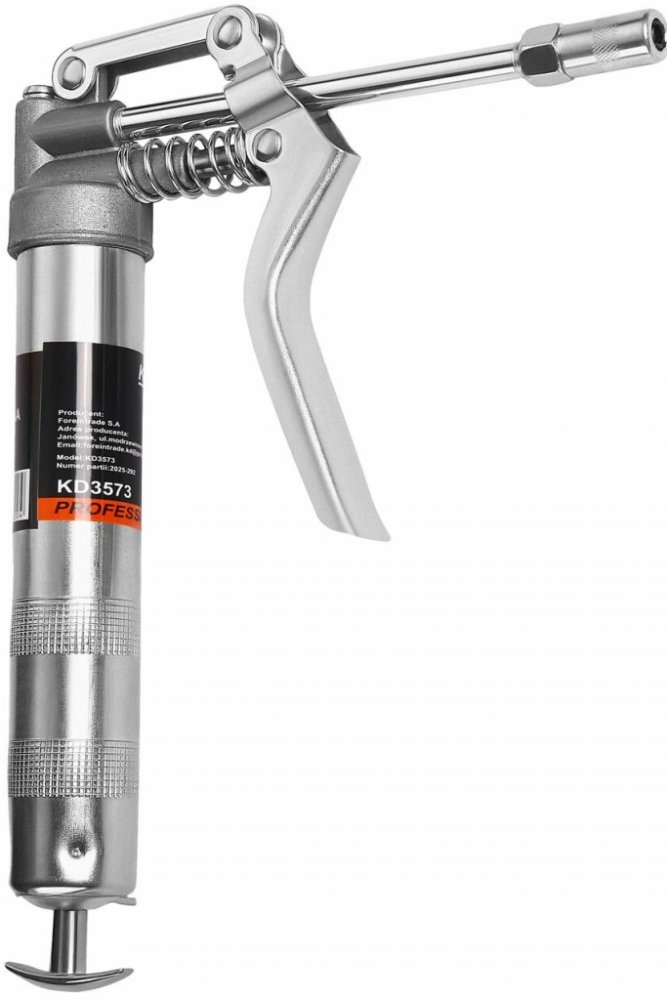 Pevné ocelové tělo a ergonomická rukojeť zajišťují dlouhou životnost a pohodlné používání. Maznice je odolná proti korozi a připravená k práci i v náročných podmínkách.