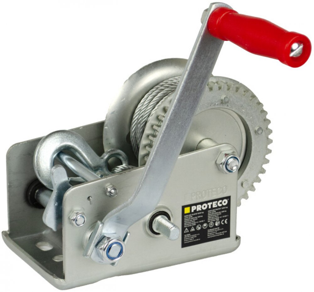 Ruční naviják 1200kg, ocelové lano (42.07-19799)Ruční naviják s ocelovým lanem je navržen pro efektivní tažení břemen ve vodorovné ose, což z něj činí ideálního pomocníka při manipulaci s těžkými předměty. Naviják je vyrobený z oceli. Pro zvýšení korozní odolnosti je opatřen zinkovým povlakem. Kovaný hák je osazen bezpečnostní západkou. Naviják je vhodný jak pro profesionální využití, tak i pro běžné domácí aplikace.Převodová mechanika navijáku je vybavena přepínatelnou západkou, která umožňuje pohyb v obou směrech. Tato funkce zvyšuje univerzálnost a efektivitu práce, protože uživatel může snadno měnit směr tažení bez nutnosti složitých úprav. Díky převodovým poměrům 4,1 : 1 a 9,8 : 1 je zajištěna dostatečná síla i pro manipulaci s těžšími břemeny. Naviják je navržen s ohledem na jednoduchost použití a spolehlivost, což jsou klíčové vlastnosti při práci s velkými zátěžemi.Technické parametry navijáku zahrnují nosnost až 1200kg, délku lana 9,5 metru a průměr lana 5mm, což poskytuje dostatečný výkon pro různé typy úkolů. Hmotnost navijáku činí 5,5kg, což zajišťuje stabilitu při provozu a snadnou manipulaci. Tento naviják je díky svým vlastnostem a robustnímu provedení ideálním řešením pro širokou škálu úkolů, od stavebních prací až po použití v domácnosti, a nabízí skvělý poměr mezi výkonem, spolehlivostí a snadností použití.