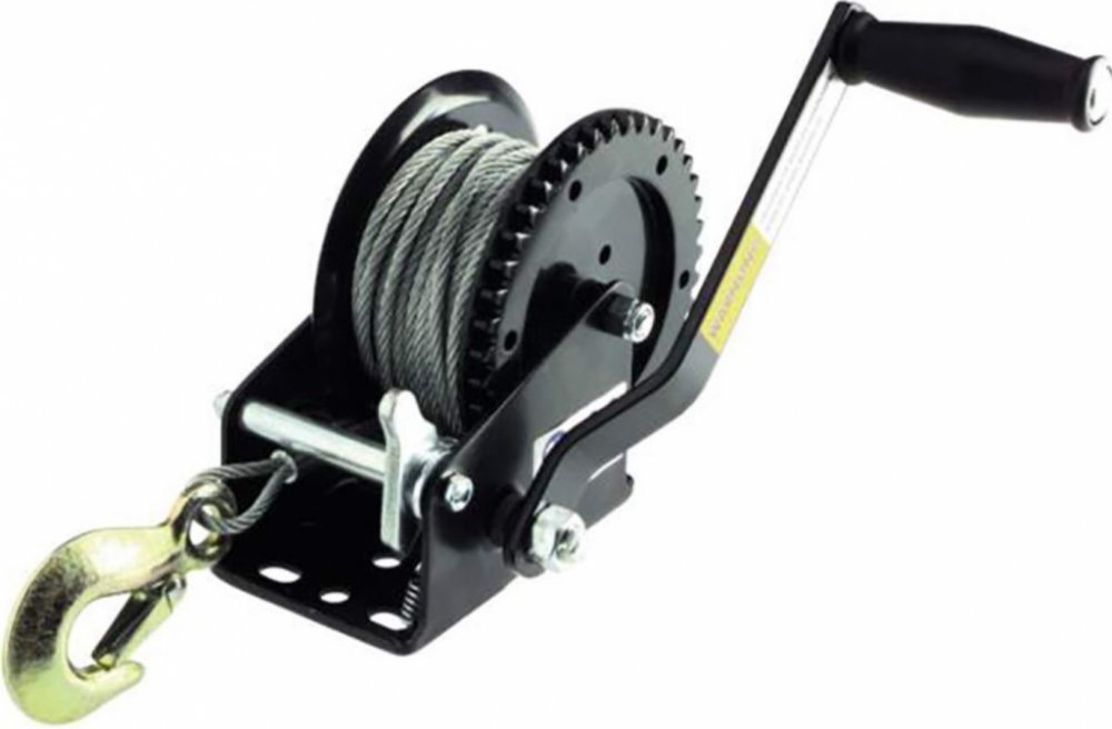 Ruční naviják 550kg ocelové lano 5mm/15m s hákem