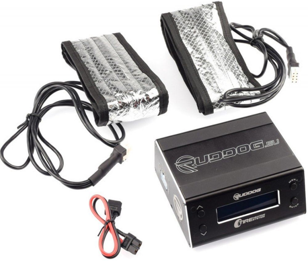 Ať už s mazáním, nebo bez něj, systémy vyhřívání pneumatik zajišťují nejlepší možnou přilnavost od prvního kola. Společnost Ruddog Products nabízí systém vyhřívání pneumatik pro cestovní vozy v měřítku 1:10 s vyhřívacími pohárky a také verzi pro Buggy a GT podvozky v měřítku 1:8 jsou k dispozici s vyhřívacími dečkami. Aby bylo možné přizpůsobit již existující systém pro příslušnou jinou oblast pou...