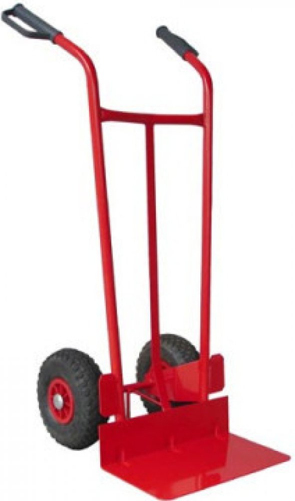 Dvoukolový ruční vozík, ideální pro manipulaci se zbožím v krabicích nebo bednách.