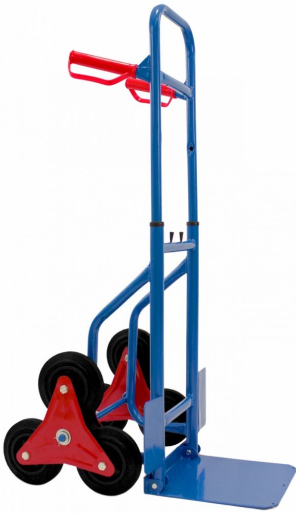 Manipulační vozík rudl se stabilní ocelovou konstrukcí s překlápěcími kolečky, pro snadnou manipulaci s nadměrným a těžkým zbožím na schodišti. Rukojeť s plastovými madly a bezpečnostní ochranou proti poranění rukou.
