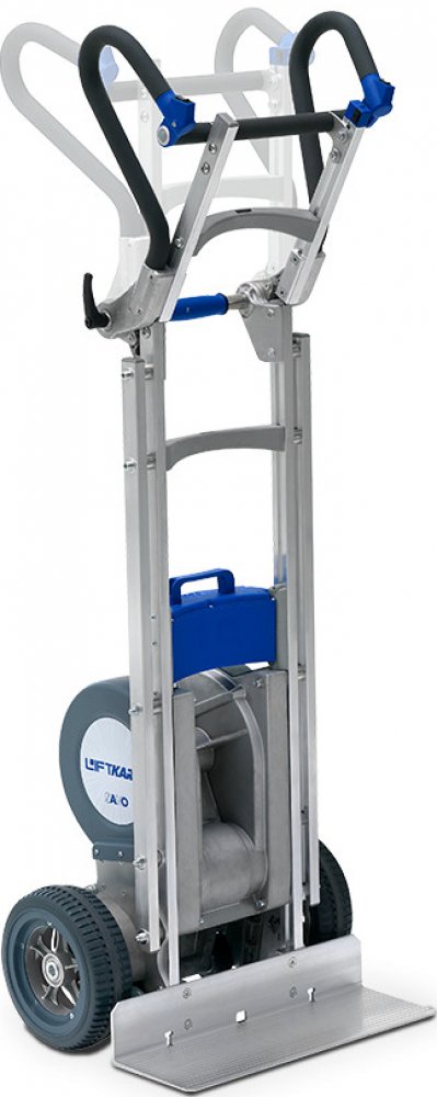 Elektrický rudl Liftkar HD Fold je elektromotorem poháněný schodolez, který nám pomůže při přepravě nákladů do schodů a ze schodů. Tento model má nastavitelný úhel rukojeti, který umožní optimalizovat těžiště nákladu. Stačí jen uvolnit upínací páky na řídítkách rámu a pak nastavit ideální polohu pro ruce. Madlo lze též úplně sklopit dolů což ocení majitelé menších dodávek. Základem schodolezu Liftkar HD je bezchybně vyvážená stoupací jednotka se dvěma rychlostními stupni a se dvěma režimy pohybu po schodišti a to buď s režimem pohybu po jednotlivých schodech nebo s pohybem plynulým. Má unikátní brzdící systém, kdy při jízdě dolů vždy automaticky zastaví na hraně schodu což je zárukou nejvyšší bezpečnosti. Má robustní rám z hliníkových profilů. Je vybaven ergonomickým madlem s protiskluzovou úpravou. Zvládne schody jakéhokoli materiálu i tvaru. Výborně se hodí k přepravě těžších nákladů jako např. nápojových automatů, trezorů apod. Každý rudl je vybaven elektronickým kontrolním systémem, který nedovolí rudl přetížit. Má dva rychlostní stupně, které se ovládají stiskem tlačítka. Ovladač pro pohyb nahoru a dolů je na obou rukojetích, uzpůsobeno pro praváka i leváka. Má neprorazitelné bezúdržbové pneumatiky. Součástí elektrického rudlu je baterie, nabíječka a základní plato 530 x 183 mm. Další varianty naleznete v sekci doplňky.