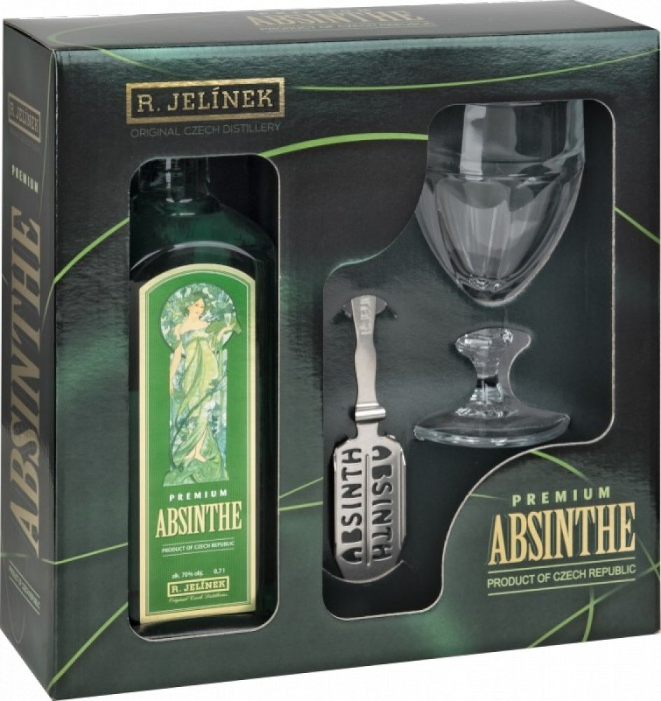 Absinth Jelínek 70% 0.70 L Dárkový balíček Absinth Jelínek je 70% bylinný likér vyrobený z červího dřeva, obsahuje také esenciální oleje z červího dřeva, anýzu, fenicly a koriandru. Jeho popularita byla také způsobena spíše neregulovaným obsahem thyonu, psychotropní látkou, která způsobila zvláštní podmínky pro spotřebitele. Možná, že díky této látce byl absinth v minulosti nápoj umělců, ale postu...