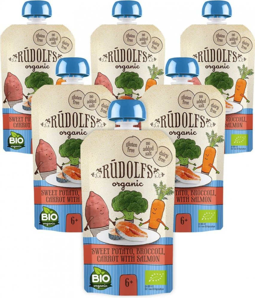 Batáty, brokolice, mrkev s lososem Rudolfs BIO Na kapsičce Batáty, brokolice, mrkev s lososem Rudolfs BIO si pochutnají děti od ukončeného 6. měsíce. Kombinuje brambory, batáty, mrkev, lososa a brokolici, naproti tomu neobsahuje lepek. Ideální je na cesty, výlety i procházky, ale děti si ji mohou dopřát i doma. Kapsička Rudolfs je v BIO kvalitě. Ukrývá se v praktickém uzavíratelném obalu. ukončené...