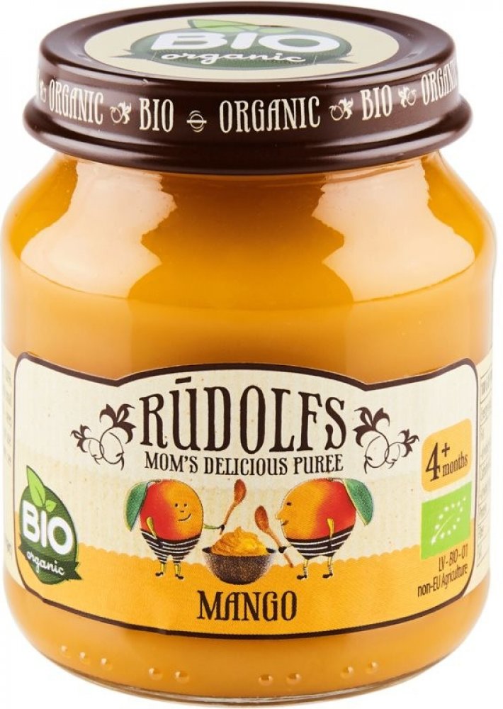 Rudolfs BIO Příkrm s mangem je lahodně sladký ovocný příkrm, který dětem nabídne exotickou chuť v jemné, krémové konzistenci. Vyroben z BIO manga bez přidané soli, cukru a umělých přísad, je ideální volbou pro první ovocné příkrmy i jako zdravá svačinka pro větší děti. Mango je přirozeně bohaté na vitamin C, beta-karoten a antioxidanty. Díky své sladké, šťavnaté chuti a jemné textuře je skvělým ovocem pro první ochutnávání. Vhodné pro děti od ukončeného 4. měsíce.