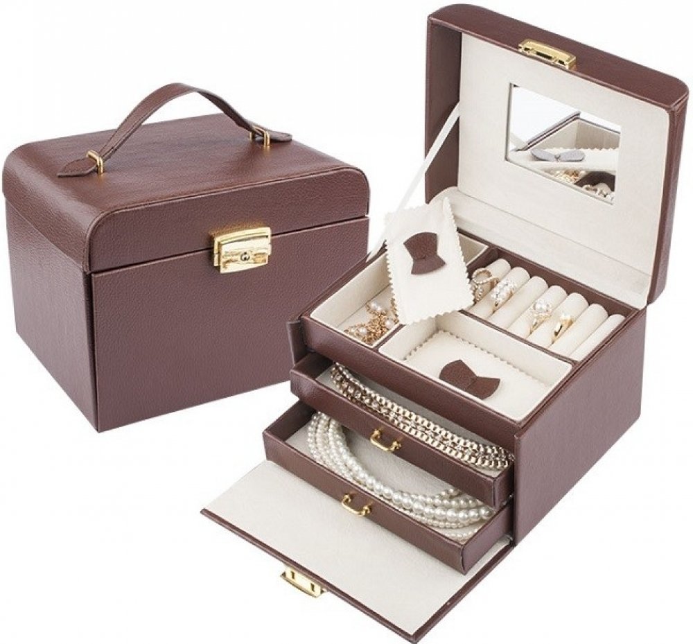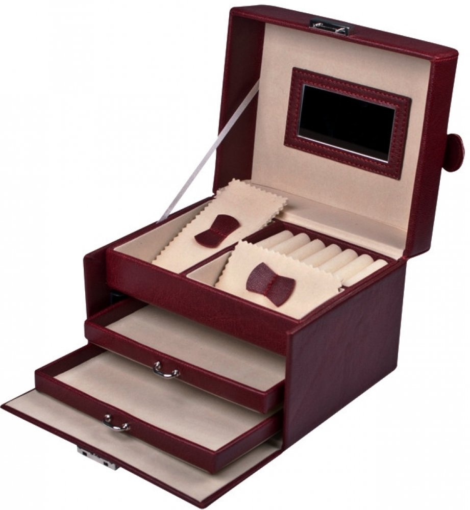 třech patrech a praktické zrcátko připevněné na víku šperkovnice.