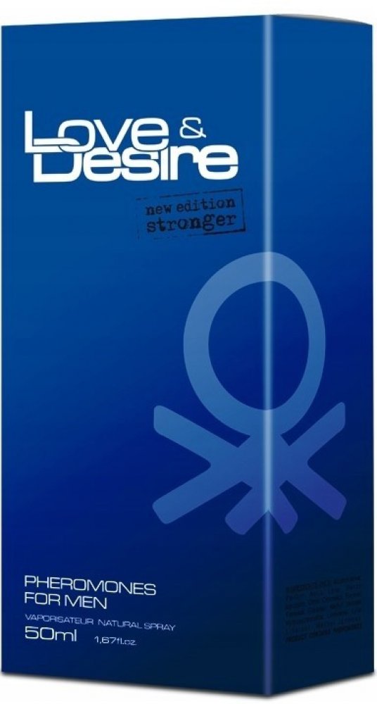 Love & Desire toaletní voda s feromony pro muže je sexuální atraktant. Je určena pro muže, kteří chtějí zvýšit své sebevědomí , zlepšit svůj úspěch u žen a vzbudit respekt a úctu u mužů. Love Desire se od ostatních variant liší zvýšeným obsahem feromonů v každém mililitru o 63 %! Je to nejsilnější a zároveň nejpraktičtější verze feromonů. Feromony a parfémy s nimi působí přirozeně , neviditelně. Vůně Love & Desire je velmi mužná , sexy a okouzlující ,, zatímco feromony nemají žádnou vůni , a nejsou vnímatelné TiB pro vás ani pro třetí osoby. Používáním parfému s feromony , již nemusíte používat jiné vůně. Mechanismus působení feromonů Každý z nás někdy postrádá odvahu ve svých vztazích mezi muži a ženami. Někdy se cítíme příliš neatraktivní ,, což nás blokuje a zdráháme se zahájit konverzaci s osobou, která nás zajímá. Atraktivita není ovlivněna pouze naším vzhledem ,, ale také „tím něčím“ ,, naším vnitřním magnetismem. Pokud byste chtěli volně navazovat nové známosti a přitom zůstat sami sebou ,, spoléhejte se na přírodní , osvědčené způsoby – na feromony. Feromony jsou přirozeným komunikačním kanálem mezi lidmi ,, takže působí na každého.