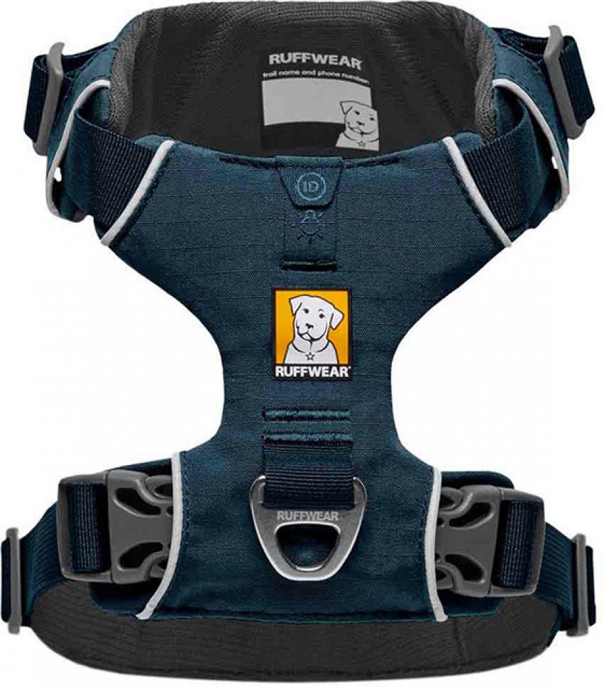 Ruffwear postroj pro psy Front Range Harness je určen pro každodenní použití, který je pohodlný pro nošení pro každého psa. Postroj je vybaven dvěma úchyty na vodítko, jedním hliníkovým V-kroužkem umístěným na zadní straně psa na každodenní procházky a druhým vyztuženým úchytem na hrudi pro výcvik nebo další kontrolu psa. Postroj je opatřen ID kapsou na psí známky k nehlučnému nošení a rychlému přístupu.