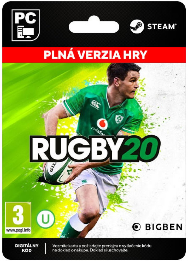 Elektronická licence určená pro platformu Steam Nové Rugby je tady! Zahrajte si všechnymožné ligy v jednom nebo více hráčích jak lokálně, tak i online: Top 14, Pro D2Gallagher a Pro14. V tomto simulátoru sibudete moci užít hloubku rugby v dosudnepřekonaném provedení. Návod na aktivaci elektronického klíče pro Steam: 1. Nainstalujte si program Steam – ke stažení zde: https://store.steampowered.com/about/?l=czech a klikněte na „NAINSTALOVAT SLUŽBU STEAM“. 2. Jestliže ve službě Steam nemáte účet, klikněte po spuštění aplikace na „VYTVOŘIT NOVÝ ÚČET a pokračujte dle pokynů. 3. Následně se přihlaste se ke svému účtu ve službě Steam. 4. Na obrazovce Steamu klikněte vlevo dole na tlačítko „+ PŘIDAT HRU“ a zvolte si „AKTIVOVAT PRODUKT VE SLUŽBĚ STEAM“. 5. Postupujte podle pokynů na obrazovce a zadejte aktivační klíč a dokončete aktivaci. 6. Produkt zobrazí na levé straně obrazovky v sekci knihovna her. 7. V případě her můžete začít stahovat hru, kterou budete po stažení moci spustit. 8. V případě dobití peněženky se doplní kredit na účtu.