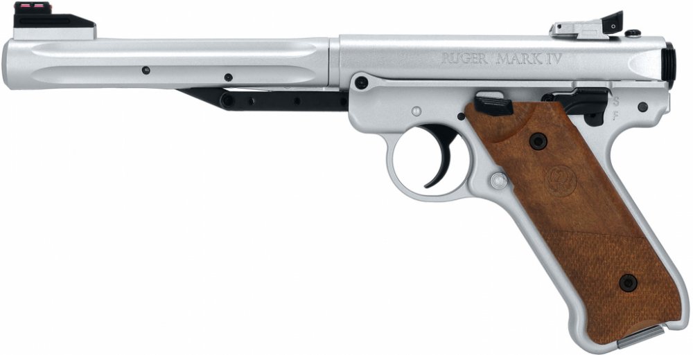 Umarex Ruger Mark IV ráže 4,5 mm "silver" je moderní jednoranná vzduchová pistole s klasickým zlamovacím mechanismem z produkce německé společnosti Umarex, která je replikou stejnojmenné samonabíjecí pistole americké značky Ruger v ráži .22LR. Robustně působící kryt z kvalitního plastu chrání hlaveň o délce 135 mm před korozí a mechanickým poškozením. Kvalitní drážkovaná hlaveň je ideální pro sportovní, tréninkovou i rekreační terčovou střelbu na vzdálenost kolem 15 metrů. Kovový mechanický systém pistole je usazen do robustního těla z odolného polymeru, jehož součástí je symetricky tvarovaná rukojeť. Ta umožňuje pohodlné držení pistole pravákům i levákům. Pistole má pevnou světlovodnou mušku, kterou doplňuje stranově i výškově stavitelné hledí. Pojistka proti náhodnému výstřelu má ovládání na těle pistole za střenkou rukojeti a automaticky se aktivuje během natahování zbraně. Před každým výstřelem je tedy nutné zbraň odjistit. Parametry: Ráže: 4,5 mm Střelivo: olověné diabolo Kapacita zásobníku: 1 náboj Pohon: pružina-píst Energie udávaná výrobcem: do 3,0 J Úsťová rychlost: 94 m/s Délka hlavně: 135 mm Celková délka: 274 mm Hmotnost: 625 gramů Bezpečnostní pojistka: ano Obsah balení: Vzduchová pistole Ruger Mark IV silver 4,5mm diabolo 3J Návod se záručním listem Zabaleno v kartonové krabici