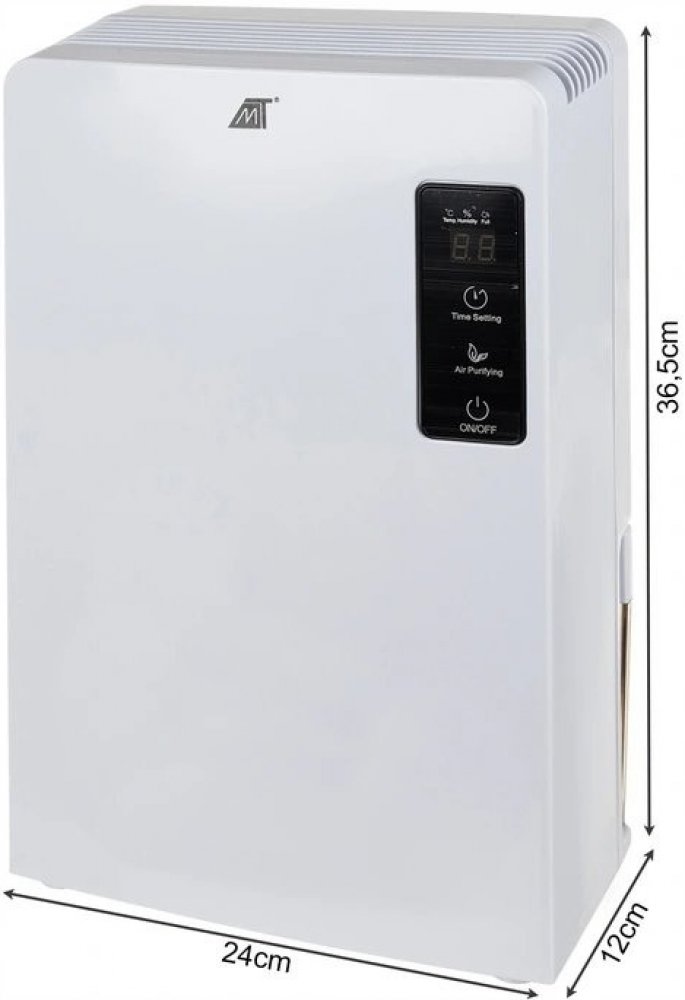 Specifikace:bílá barvamateriál: kov / plastdisplej: LCD, zobrazuje: teplota a vlhkostčasovač: 24 hodinČištění a sušení vzduchu 2v1možnost pracovat při teplotách pod 0: ano do -5 ° Cfunkce automatického odmrazovánívelikost místnosti: až 30 m²čištění: k rozkladu látek znečišťujících ovzduší používá technologii UV záření a čištění oxidem titaničitým (TiO2)kapacita odvlhčování: až 700 ml denně při 25 ° C a 85% vlhkostiobjem nádrže na vodu: 1800 mlmožnost odvodu vody hadicí: anovestavěný teploměrvestavěný vlhkoměrhygrostatnapětí: 220-240Vvýkon: 90Wautomatické vypnutí po naplnění nádrže: anorežim provozu: na základě systému Peltiervhodné pro: domácnost, kancelář atd.vyjímatelná nádrž na vodurozměry: 36,5 / 12 / 24cmdélka hadičky: 100 cmdélka kabelu: 1,30 mhmotnost: 2 kg