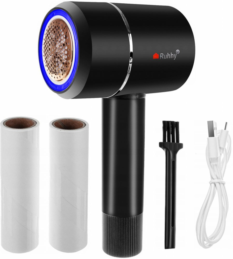 Odstraňovač žmolkov 3v1 USB + valček 2ks Ruhhy Prezentovaný odstraňovač žmolkov je univerzálne zariadenie, ktoré je určené na odstránenie žmolkov na odevoch, svetroch, šatkách, mikinách. Skvele sa hodí aj na čalúnenie áut, prikrývky a dokonca aj koberce. Má tiež 2 valčeky na čistenie oblečenia, ktoré si môžete vziať so sebou do kabelky. Odžmolkovač je vybavený aj UV svetlom na dezinfekciu. Odžmolk...