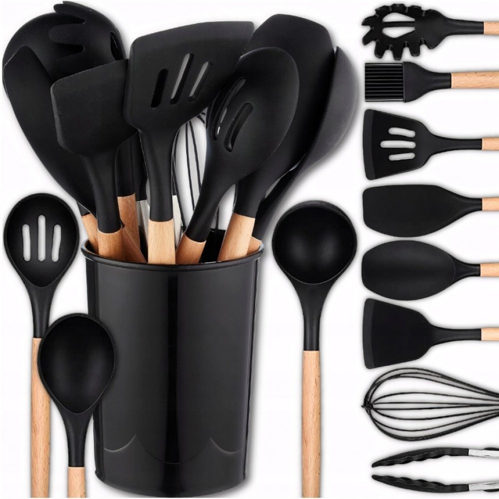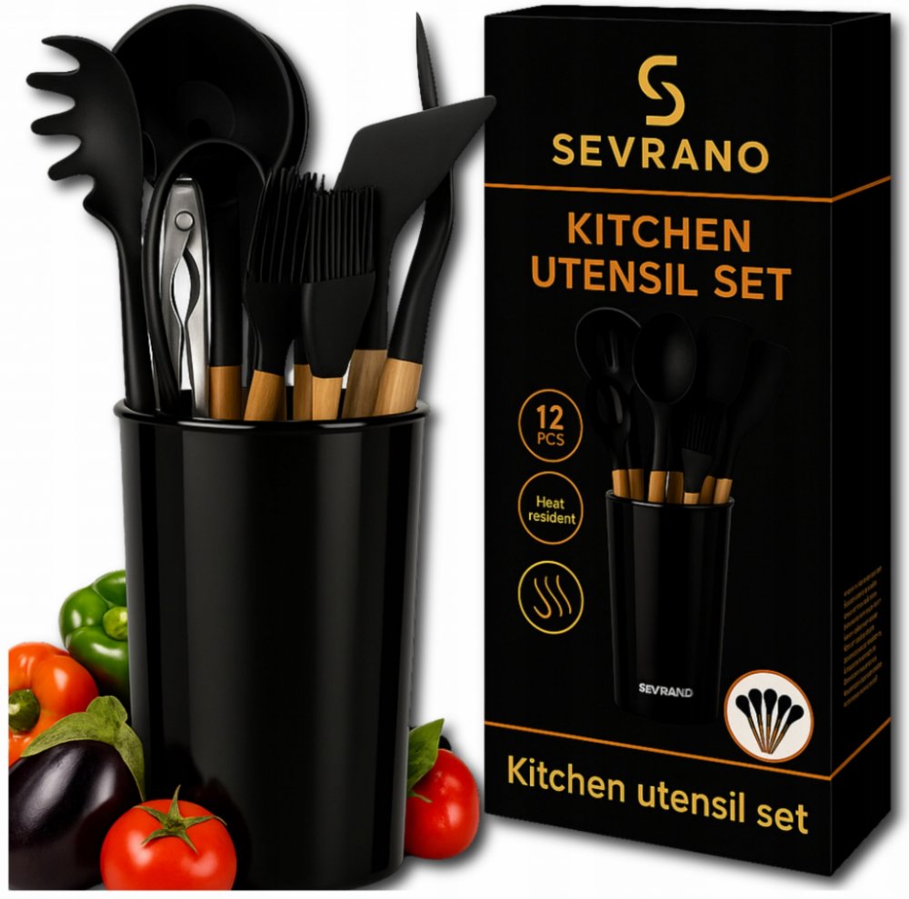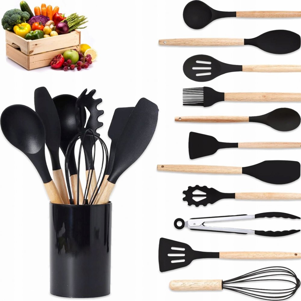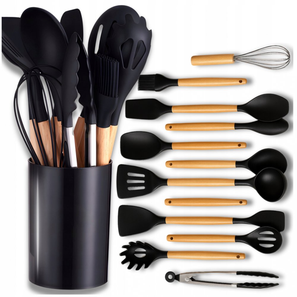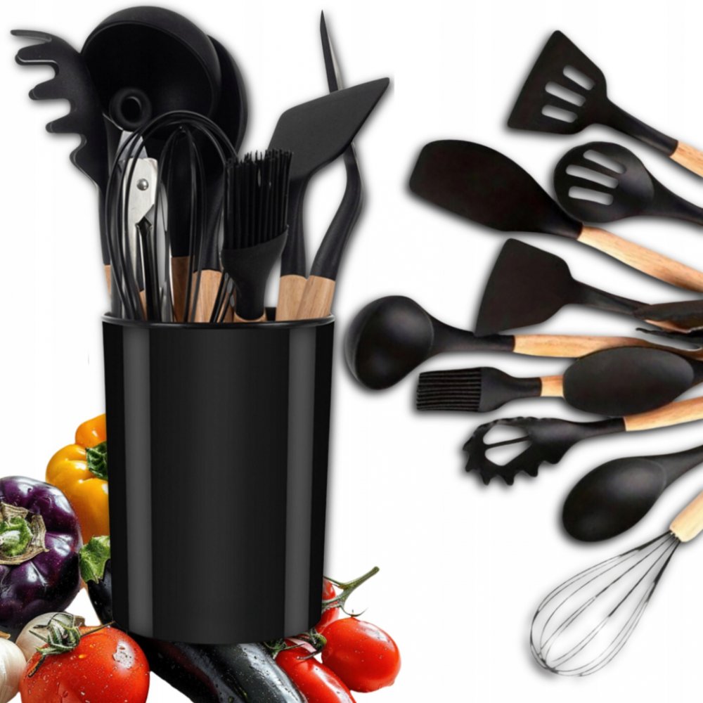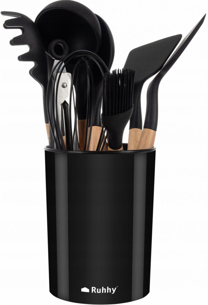Sada kuchyňského náčiní Ruhhy 21804 je ideální volbou pro každého, kdo hledá praktické, odolné a zároveň elegantní pomocníky do kuchyně. Obsahuje 11 kusů kuchyňského náčiní a designový stojan na uskladnění. Všechny nástroje mají silikonové zakončení, které nepoškrábe povrchy a je odolné vůči vysokým teplotám až do 230 °C. Dřevěné rukojeti zajišťují pevný úchop a dodávají sadě stylový vzhled. Ideální jako dárek i každodenní vybavení moderní kuchyně.