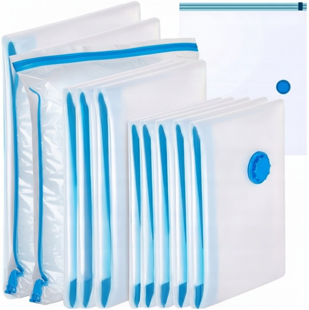 Sada 15 vakuových sáčků je opakovaně použitelná. Uložené věci jsou dokonale chráněny proti prachu, špíně, vodě, vlhkosti a molům. Oblečení uložené bez přístupu vzduchu zůstane déle čerstvé a vypadá jako nové. K odsávání vzduchu stačí použít běžný vysavač. Tašky vám umožní ušetřit spoustu místa.