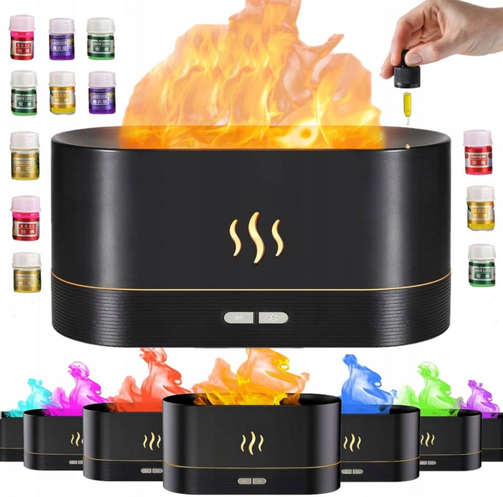 - ZAŘÍZENÍ 3 v 1 – je extrémně tichý a přenosný zvlhčovač vzduchu , který udržuje prostor v bytě správně zvlhčený. Jeho moderní vzhled zapadne do každého interiéru a vůně z něj sálající dodá vašemu domovu punc elegance. Navíc má přístroj vestavěnou RGB LED lampu s ohnivým efektem a možností aromaterapie.