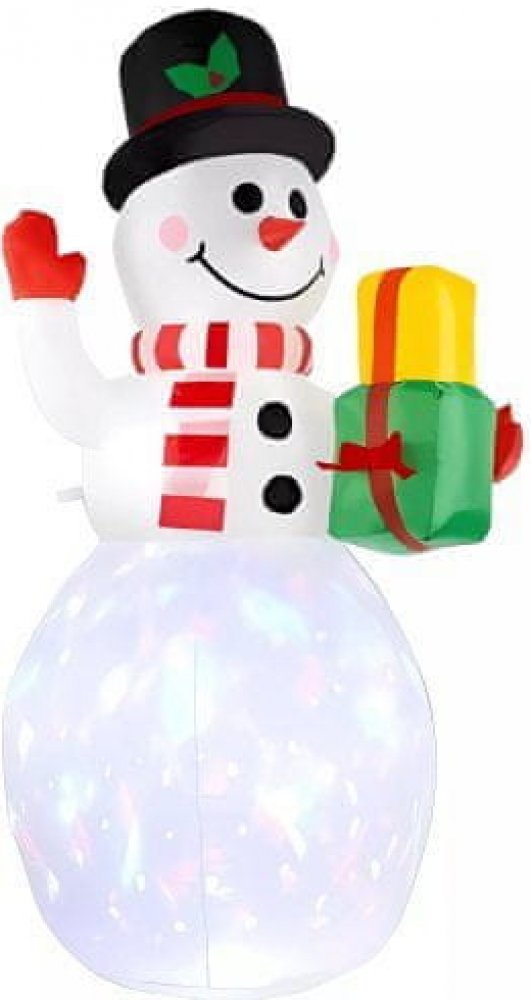 VESTAVNÝ KOMPRESOR A OTOČNÝ LED PROJEKTOR - sněhulák má vestavěný kompresor, který jej rychle naplní vzduchem a bude vypadat krásně. Dekorace má navíc zabudovaný otočný LED projektor, který ji osvětluje zevnitř. Po setmění se sněhulák rozzáří všemi vánočními barvami. Projektor je naprogramován s 8 střídavými světelnými sekvencemi.