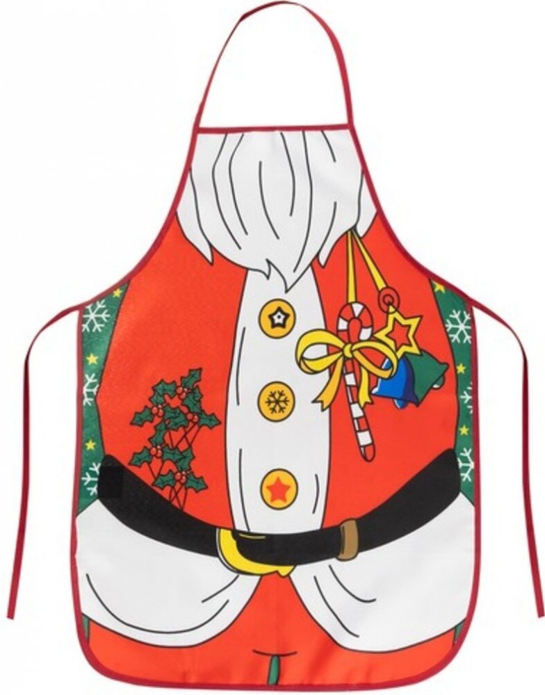 - OCHRANA PŘED ZNEČIŠTĚNÍM VAŠEHO VÝTVORU - při přípravě štědrovečerní večeře, vánočního pečení a slavnostních vánočních večeří je potřeba dobrá kuchyňská zástěra. Vánoční kuchyňská zástěra znázorňující Santov outfit je okouzlující a praktický doplněk, který dodá vašim kulinářským povinnostem spoustu radosti .