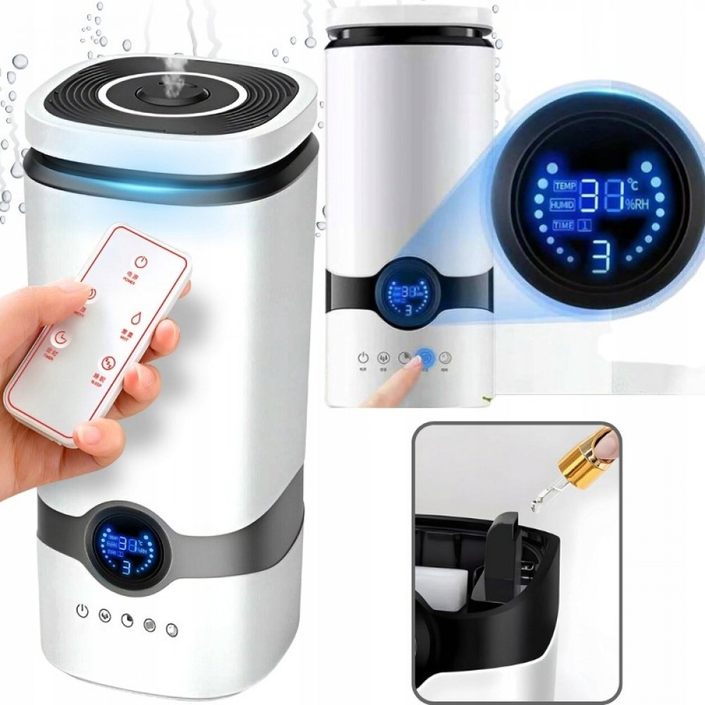 Ultrazvukový zvlhčovač vytváří signál s frekvencí milionkrát za sekundu. Mlha se mísí se vzduchem, aby bylo dosaženo rovnoměrného zvlhčení. Digitální zvlhčovač vzduchu vám pomůže zbavit se problému se suchým vzduchem ve vašem bytě nebo kanceláři. Nedostatečně vlhký vzduch na úrovni pod 30 % způsobuje rychlejší vysychání sliznic a problémy s pokožkou, alergiemi a dýchacími cestami. Vlhkost v místnostech může klesat na podzim a v zimě, kdy je topná sezóna v plném proudu, a také v létě - při vysokých teplotách. Problém suchého vzduchu skvěle vyřeší digitálně řízený zvlhčovač vzduchu. Toto zařízení produkuje chladnou mlhu, která zvyšuje procento vlhkosti i ve velké místnosti. Zvlhčovač vzduchu s ionizační funkcí je také vynikajícím zařízením pro boj se škodlivými kladnými ionty produkovanými elektrickými zařízeními.