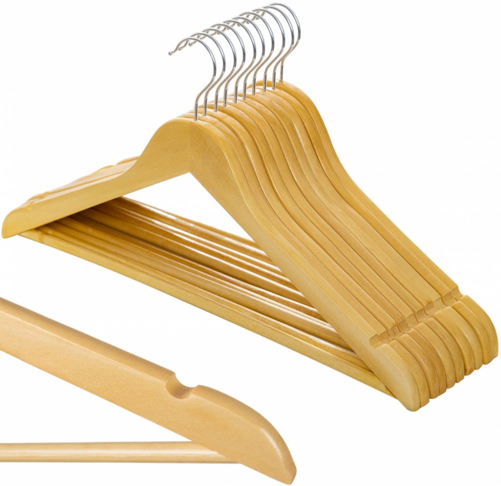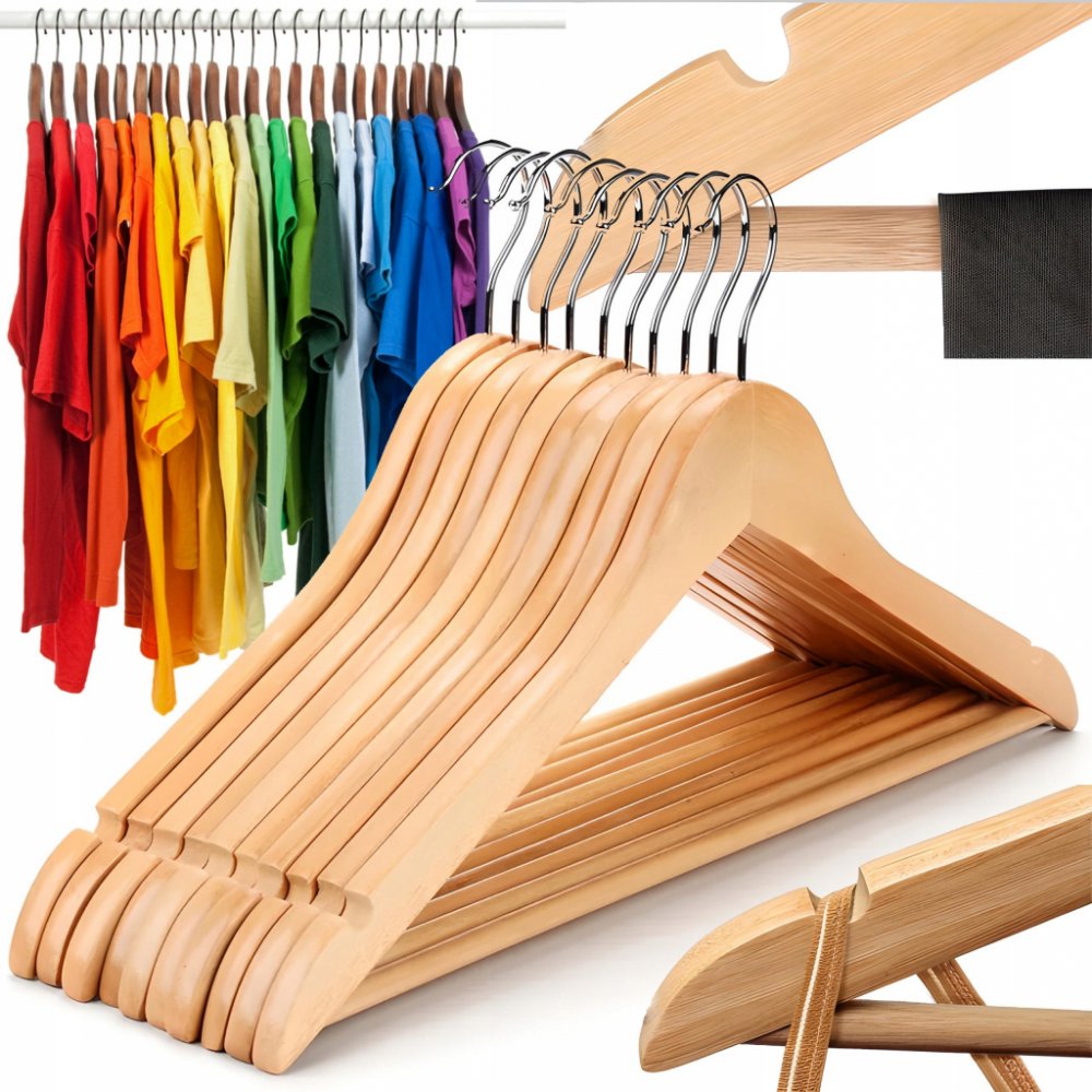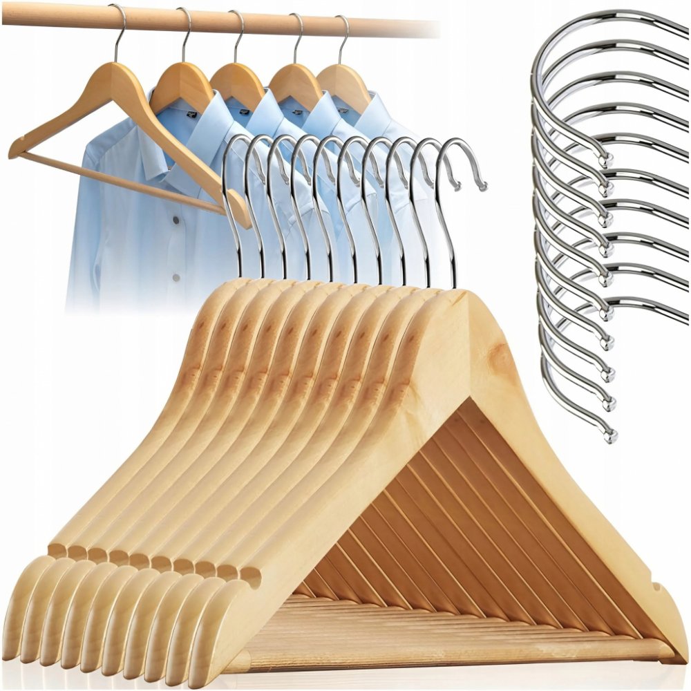 DŘEVĚNÉ VĚŠÁKY NA ODĚVY 10 KS VÝJIMEČNÁ KVALITA A ODOLNOST Sada 10 dřevěných ramínek na šaty je synonymem elegance a odolnosti, ideální pro každého, kdo si ve svém šatníku cení vysoce kvalitního zpracování. Každý věšák v ceně je vyrobena z masivního dřeva , které se vyznačuje vysokou odolností a přirozenou krásou. Dřevo bylo pečlivě pokryto bezbarvým lakem , a nejen to chrání materiál před vlhkost...