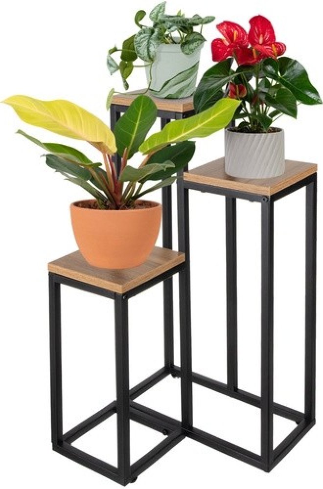 Dodejte svému domovu nebo venkovnímu prostoru moderní přírodní nádech - s třípatrovým venkovním stojanem na květiny. Tento stojan na květiny je vyroben z vysoce kvalitního kovu a MDF a kombinuje maximální stabilitu s estetickým designem v módním industriálním stylu.Ať už jako stylové zvýraznění v obývacím pokoji, jako dekorativní stojan na rostliny na balkoně nebo jako funkční prvek v předsíni - nadčasový loftový design se bez námahy přizpůsobí jakémukoli prostředí.Díky třem robustním úrovním (každá s nosností až 15 kg) nabízí stojan dostatek prostoru pro vaše oblíbené rostliny a umožňuje kaskádovitou prezentaci v různých výškách.Povrch odolný proti vlhkosti trvale chrání poličku před korozí - a to i při intenzivní péči o rostliny. Pevná konstrukce pro maximální bezpečnost Kovový stojan na květiny - Vyroben z odolného kovu a MDF desky, každá úroveň unese až 15 kg - dokonalá prezentace rostlin bez kývání.Technické údaje :pro vlastní montáž: ano,maximální zatížení police: 15 kg,maximální zatížení: 45 kg,rozměry police: 17 x 17 cm,rozměry: 67 x 34,5 x 34,5 cm,hmotnost: 3,5 kg,hmotnost jednoho balení: 4,15 kg Barva: černá + hnědá,materiál: železo, MDF, PP Nadčasový design pro každý interiér - moderní geometrický design rostlinného taburetu Loft harmonicky zapadne do obývacího pokoje, kanceláře, ložnice nebo venkovního prostoru. Odolnost proti vlhkosti - Práškově lakovaný povrch stojanu na květiny poskytuje spolehlivou ochranu proti korozi - ideální řešení i v případě, že své rostliny často zaléváte. Tříúrovňové vystavení rostlin - Praktické uspořádání rostlin ve třech úrovních zajišťuje elegantní dekoraci šetřící místo a zdůrazňuje rozmanitost rostlin. Snadná montáž včetně příslušenství - Díky dodanému montážnímu návodu a příslušenství je montáž rychlá a snadná - zcela bez stresu.