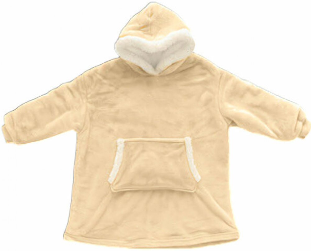 Zateplená mikina na domácí lenošení z materiálu podobnému dece s teplým beránkem. Zpříjemněte si relaxaci doma u filmu nebo čtení knížky s touto pohodlnou delší mikinou s kapucí.