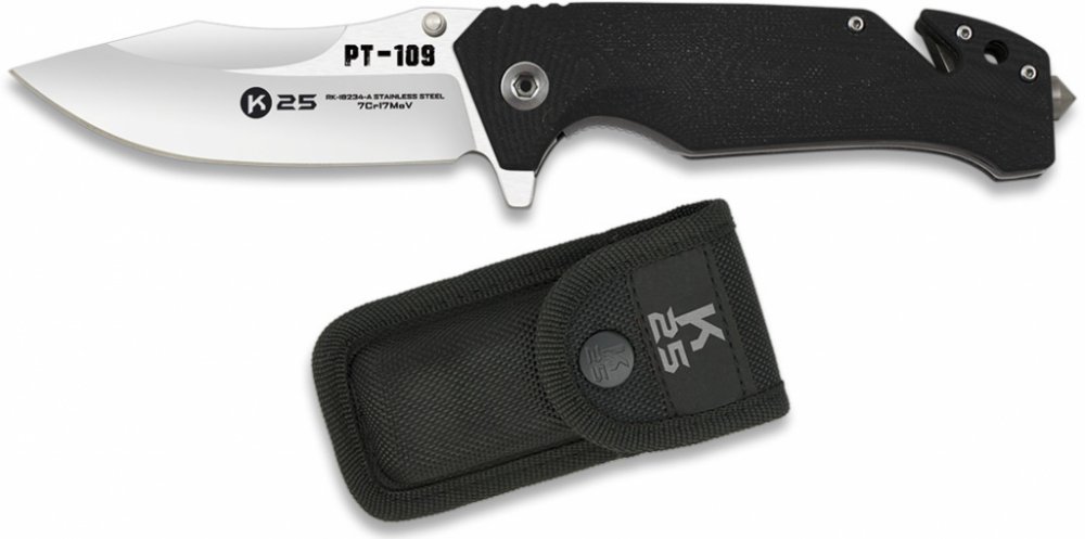 K25 95 mm 215 mm 180 g rukoväť: plast G10, čepeľ: nerezová oceľ G10