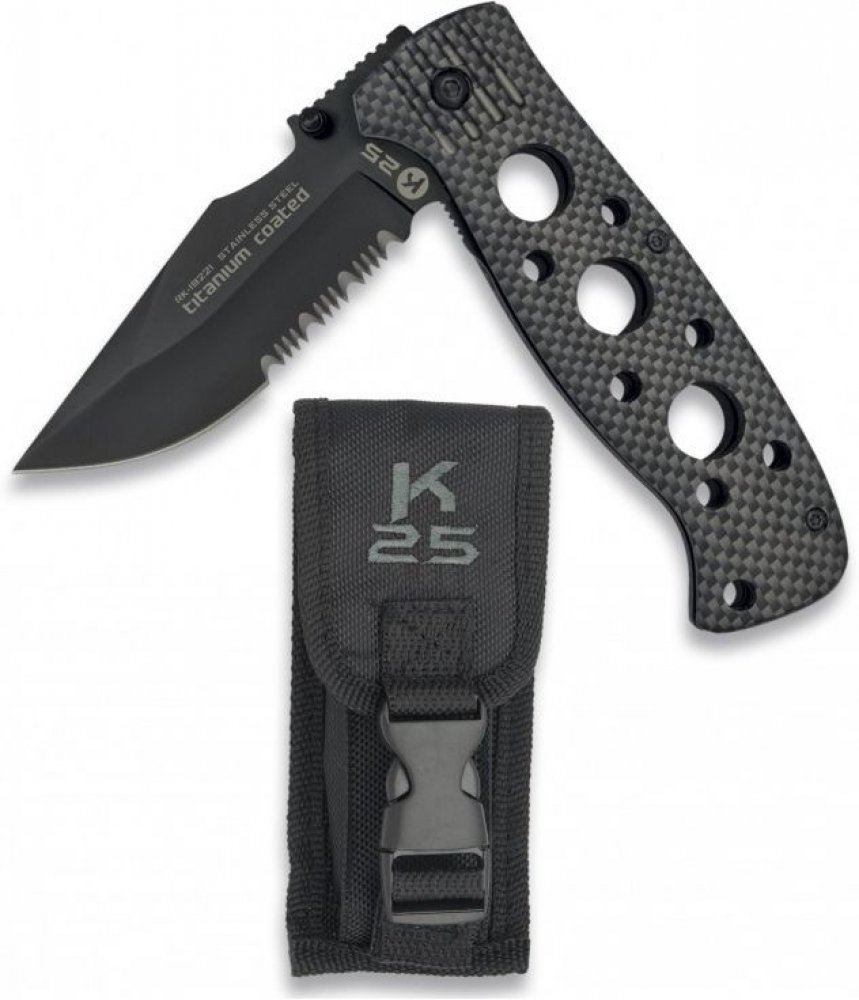 Nůž je dodáván s pevným nylonovým pouzdrem.