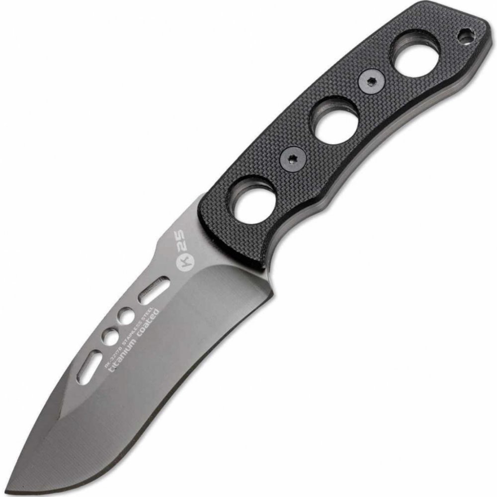 Nůž na krk K25 je malý a praktický nůž, který navzdory svým kompaktním rozměrům nabízí velký potenciál a užitečnost. Konstrukce sestává z jednoho kusu 7Cr17Mov a je vybavena stupnicemi G-10. S dírou na šňůrku, pouzdrem Kydex a korálkovou řetízkem.