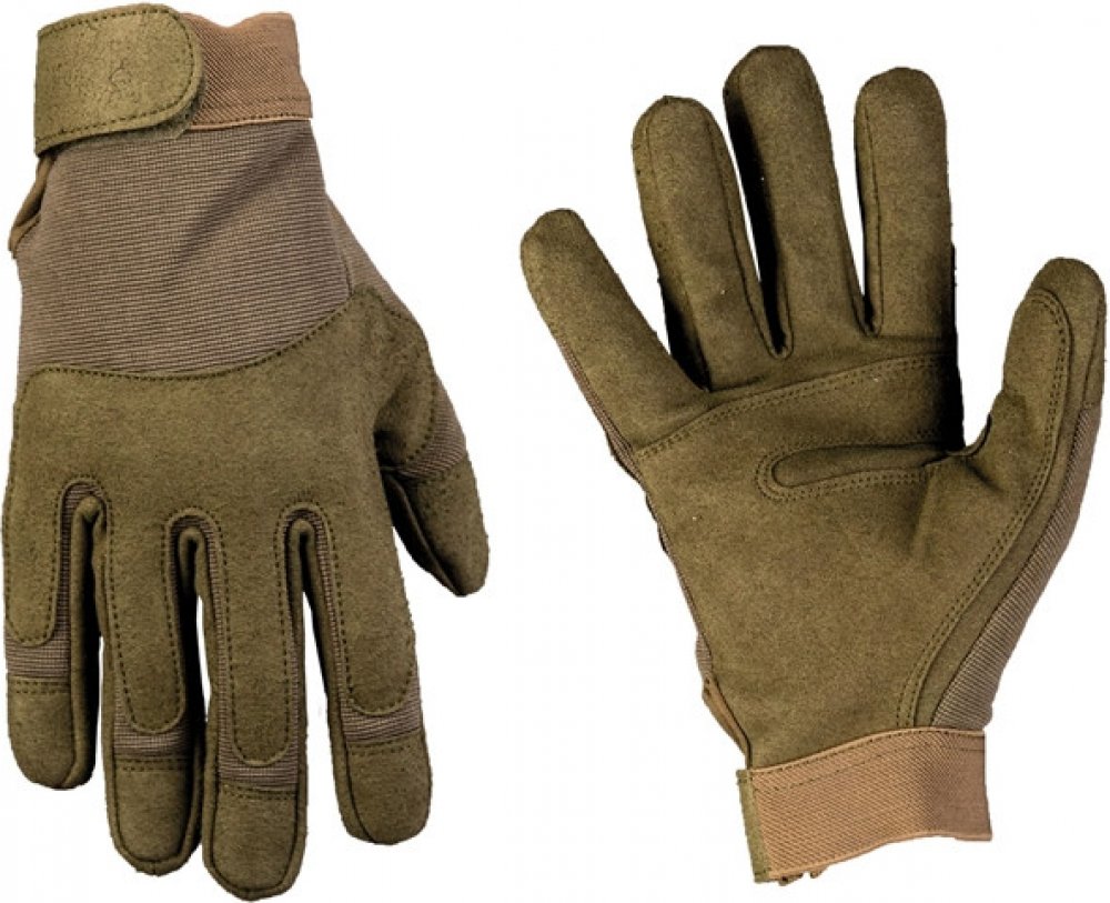rukavice Army oliva Rukavice army gloves černé velcro zapínání kombinace pružného materiálu a syntetické kůže krátký střih rukavic prsty mají po stranách malé otvory jako ventilaci rukavice mají univerzální využití do všech ročních období barva: černé Materiál: 70% koženka 27% elastan 3% jiné vlákna údržba: ruční čištění výrobce: Mil-Tec Velikostní tabulka: rozměry (šířka ruky) S - 8 cm M - 9 cm L...