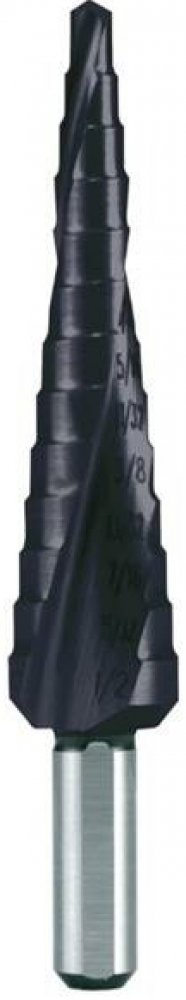 - Profesionální stupňovitý vrták z rychlořezné oceli s povlakem TiAlN (titan aluminium nitrid).