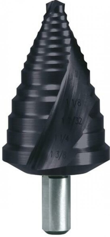 - Profesionální stupňovitý vrták z rychlořezné oceli s povlakem TiAlN (titan aluminium nitrid).