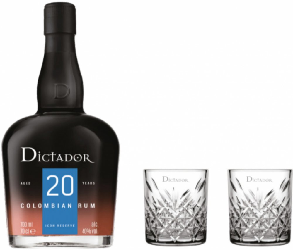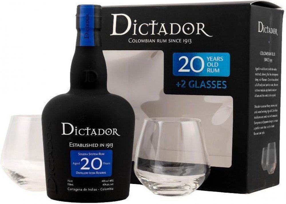 Rum Dictador 20y 40% 0,7 l (dárkové balení 2 sklenice)