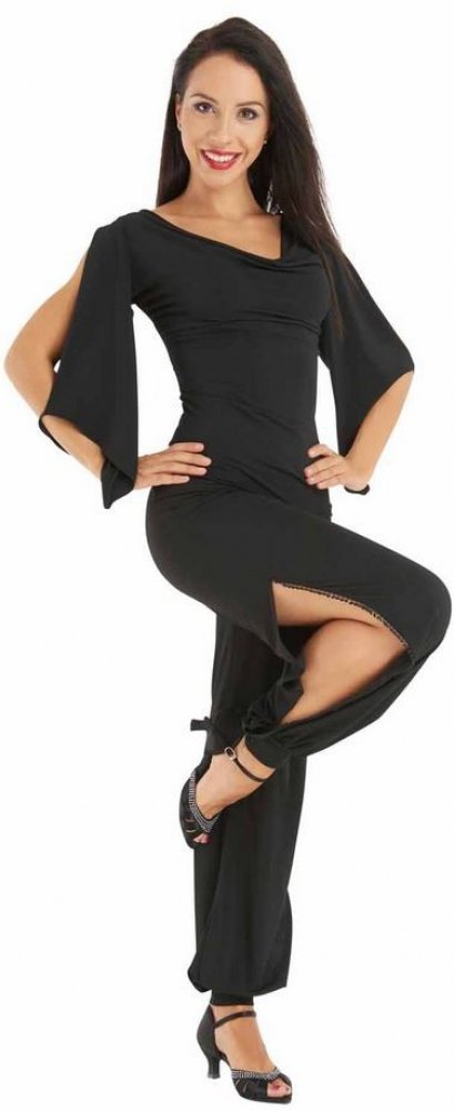 Dámské taneční kalhoty se zdobeným průstřihem na vnější straně nohavice. Vzdušný a lehký materiál, který zefektivní každý Váš taneční krok. Doporučujeme kombinovat s tanečními trikoty, které se nevyhrnují jako běžné halenky a budou přesně sedět jako u modelky na fotce. Oslníte na každém tanečním parketu!