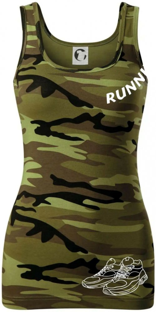 Running nápis šikmo dámské Maskáčové tílko Zelený maskáč