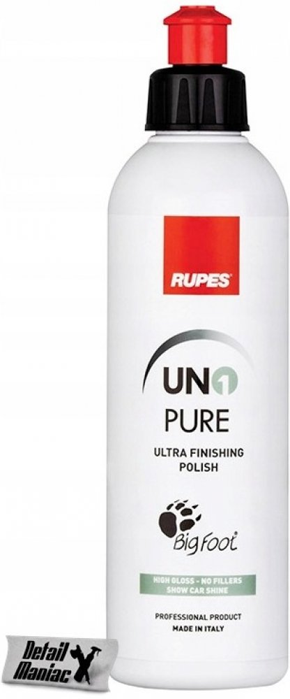 RUPES UNO Pure Polish (250 ml) - lešticí pasta Lešticí pasta RUPES Ultra Finishing Polish - UNO PURE je součástí profesionálního korekčního systému RUPES. Její označení bílou barvou zaručuje snadnou identifikaci při výběru kotoučů RUPES - k "bílé pastě" používejte bílý, tedy ultrajemný lešticí kotouč. Technické parametry Určeno pro: orbitální / DA leštičky, planetární leštičky, rotační leštičky. Odstraňuje: velmi lehké defekty a leští do vysokého lesku. Objem: 250 ml.