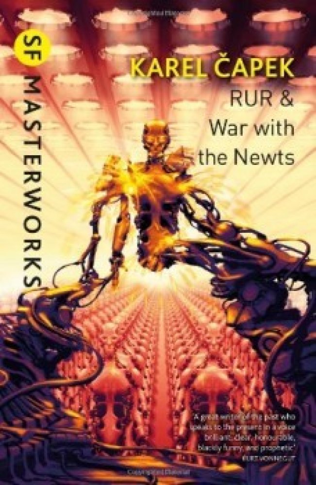 Written against the background of the rise of Nazism, War With the Newts concerns the discovery in the South Pacific of a sea-dwelling race, which is enslaved and exploited by mankind. In time they rebel, laying siege to the strongholds of their former masters in a global war for supremacy. R.U.R., or Rossum's Universal Robots, seen by many as a modern interpretation of the 'golem' myth, is regard...