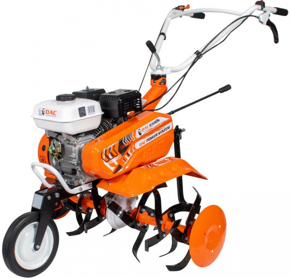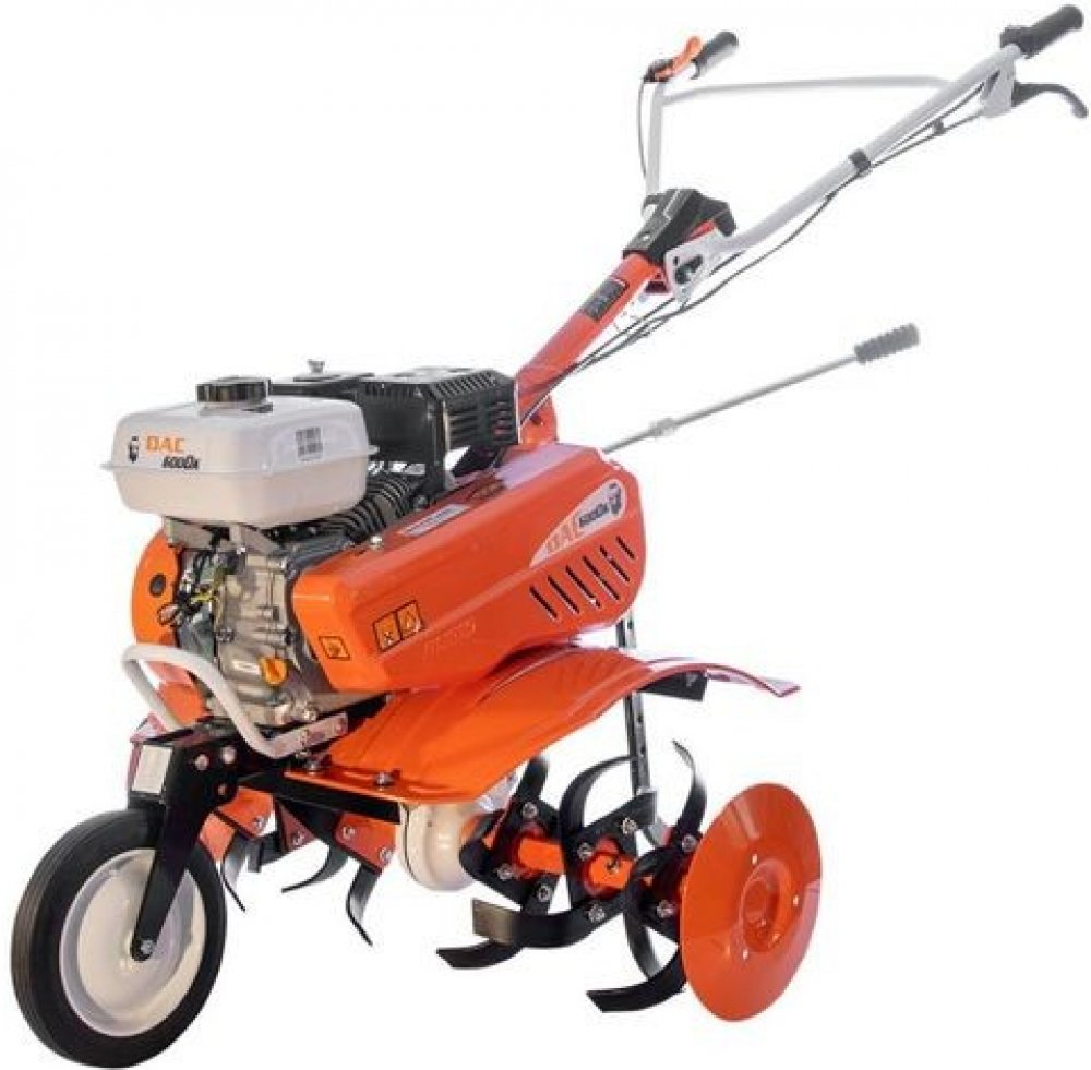 Výkonný benzínový kultivátor pro kypření půdy ve fóliovnících nebo v zahradě. Poloprofesionální kultivátor DAC 6500K je určen pro plochy od 600 do 1000 m2. Čtyřtaktní motor General Engine umožňuje snadnou údržbu jakýmkoli uživatelem bez pokročilých znalostí v technice. Kultivátor je vybaven řemenovou a řetězovou převodovkou se 3 převodovými stupni, 2 vpřed a 1 vzad, což umožňuje zkrácení času zpracování půdy. Poloprofesionální benzínový kultivátor DAC 6500K umožňuje připojení široké škály příslušenství, jako je pluh na jednu radlici, vertikutátor, vyorávač brambor, kultivátor, radlice na sníh, bubnový systém sečení, secí stroje, kovová nebo pryžová kola, přívěs s nosností až 500 kg. Přestože kultivátor váží 80 kg, snadno se s ním manipuluje díky nastavitelným kovovým rohům a gumovým rukojetím, které jsou určeny k tlumení vibrací generovaných kultivátorem. Jednoduchá údržba nevyžaduje mnoho pokročilých technických znalostí.