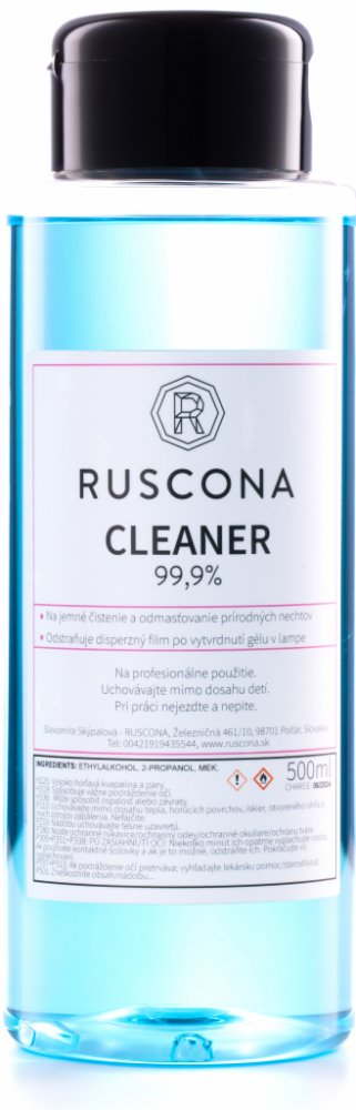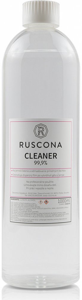 Účinný čistič je nevyhnutelná pomocná tekutina každé nehtařky. Tento Cleaner obsahuje 99 % alkoholu a je perfektní na odmaštění přírodních nehtů před modelací, ale i na odstranění výpotku po polymerizaci. Tento Cleaner je vhodný na dezinfekci a prvotní vyčistění nehtů před modelací. Jemně čistí a odmašťuje přírodní nehty Odstraňuje disperzní film Objem: 500 ml nebo 1000 ml